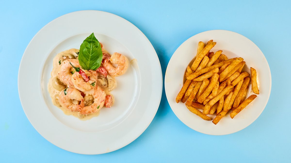 alle Tellergerichte werden mit Pommes frites und Brot serviert