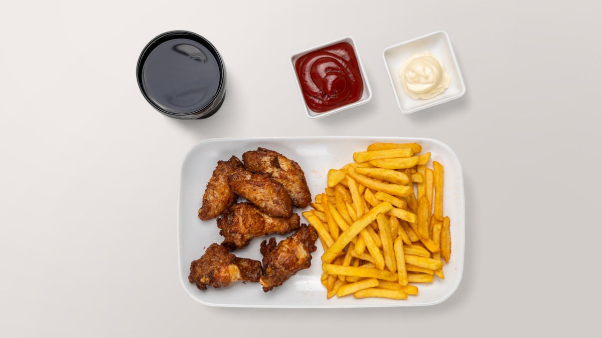 6x Chicken Nuggets 3x Chicken Wings 3x Chicken Wings Hot 3x Filetstück kleine Pommes frites