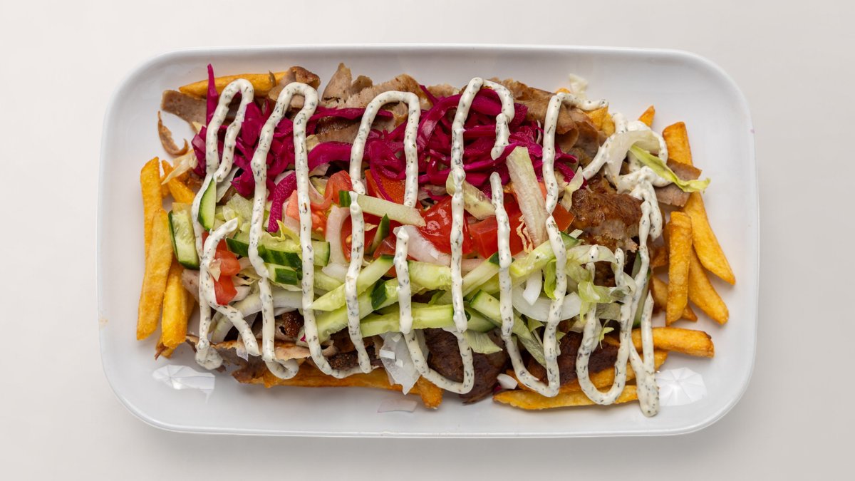 mit Dönerfleisch, Pommes frites, Salat und Soße