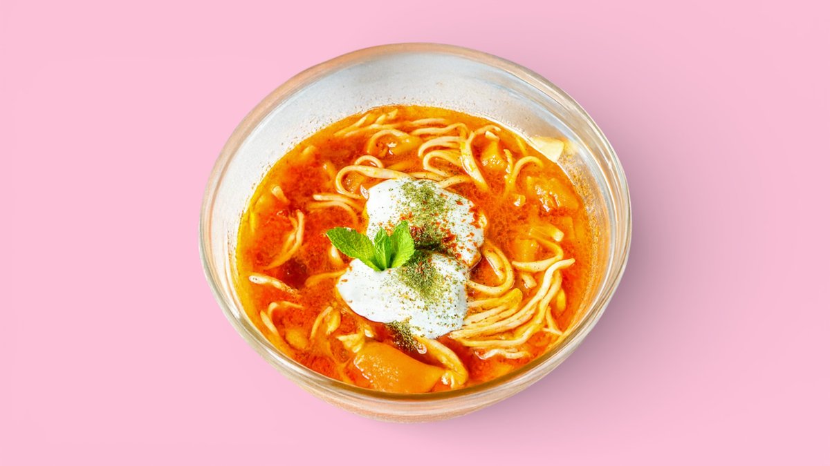 Ramen Nudeln, Karotten, Kartoffeln, Kiddney Bohnen und Joghurt und getrocknete Minze, (Falls Vegan ohne Joghurt angeben)