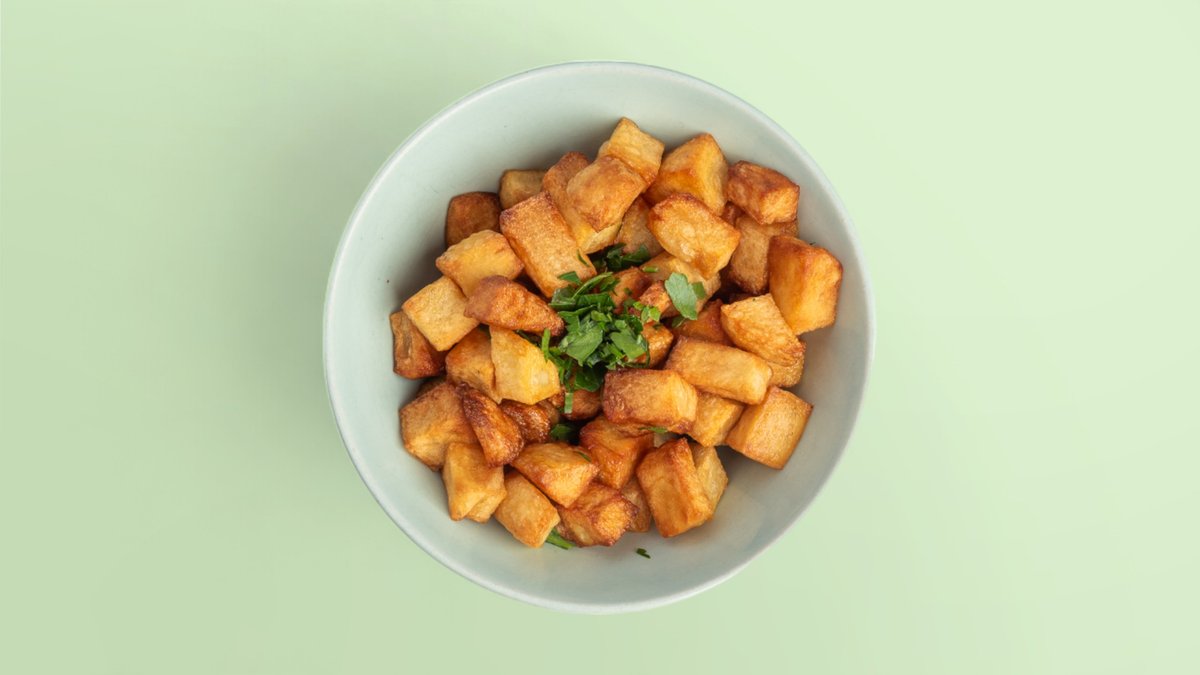 mit Kichererbsen, frittiertem Brot, Cashewnüssen und Sesamsoße