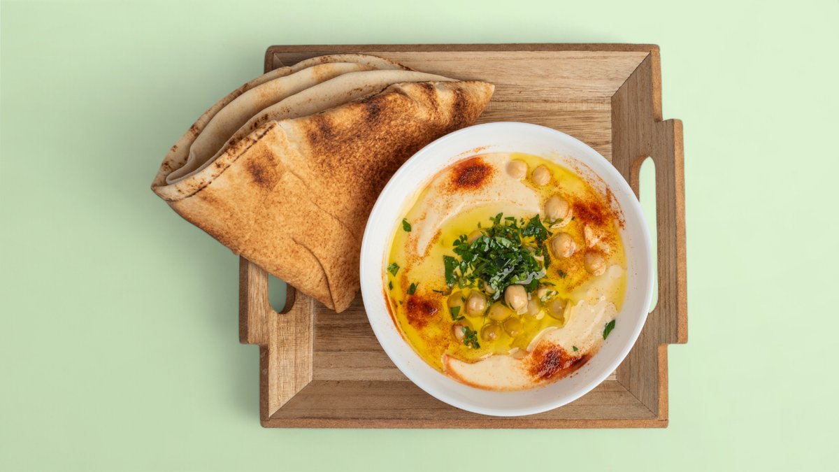 mit Kichererbsen, Sesampaste und Rinderhackfleisch