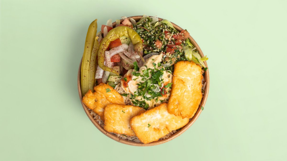 alle Bowls werden mit Salat-Mix, einer Zutat und 2 Dips nach Wahl zubereitet