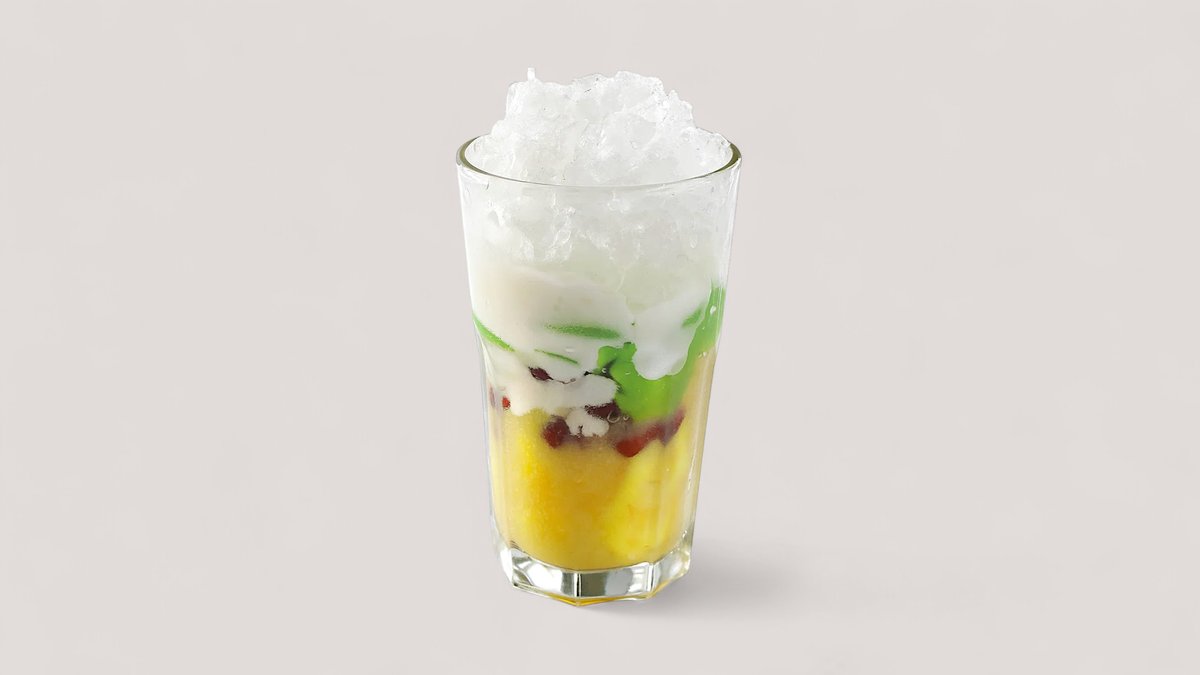 verschiedene Bohnen mit Kokosmilch, Tapioka und EiswĂĽrfeln