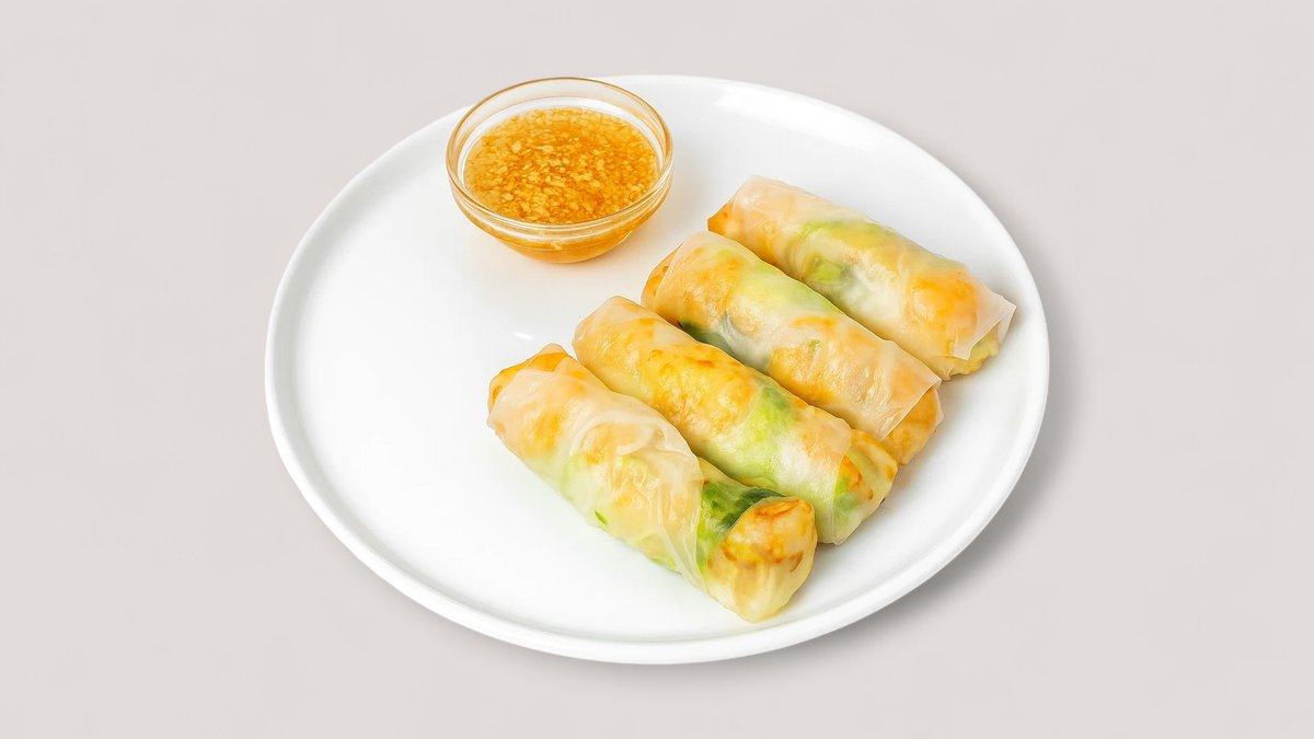 4 StĂĽck mit Reisnudeln, Salat, asiatischer Minze, FischsoĂźe und einer Zutat deiner Wahl