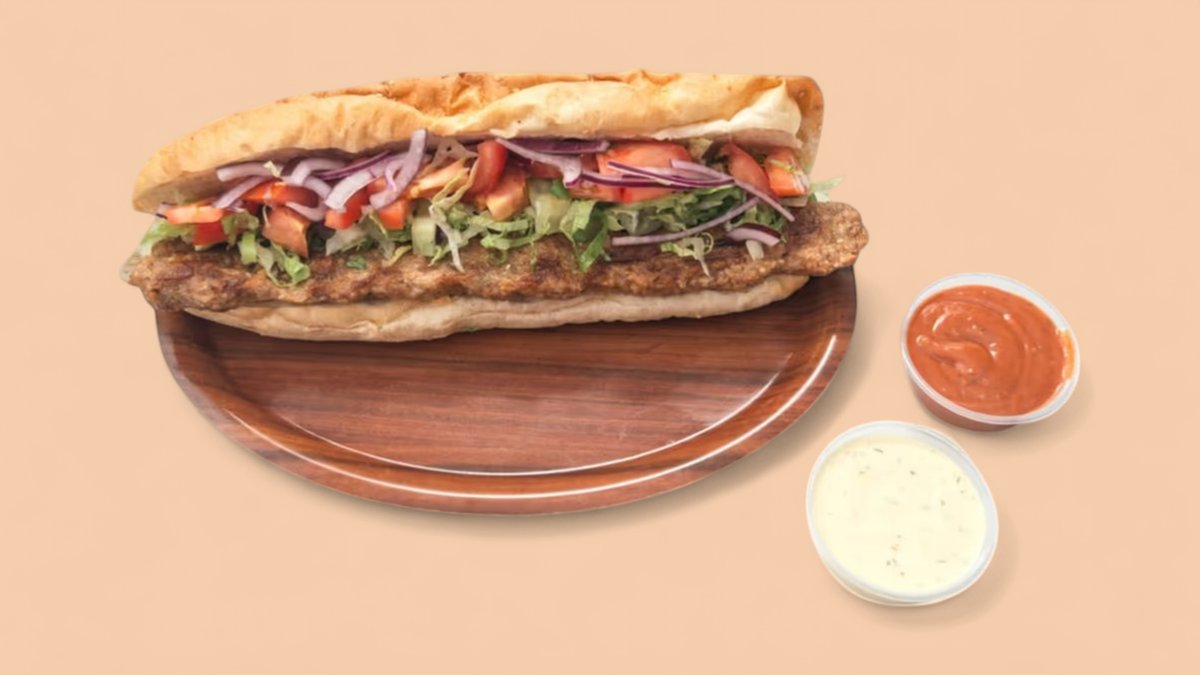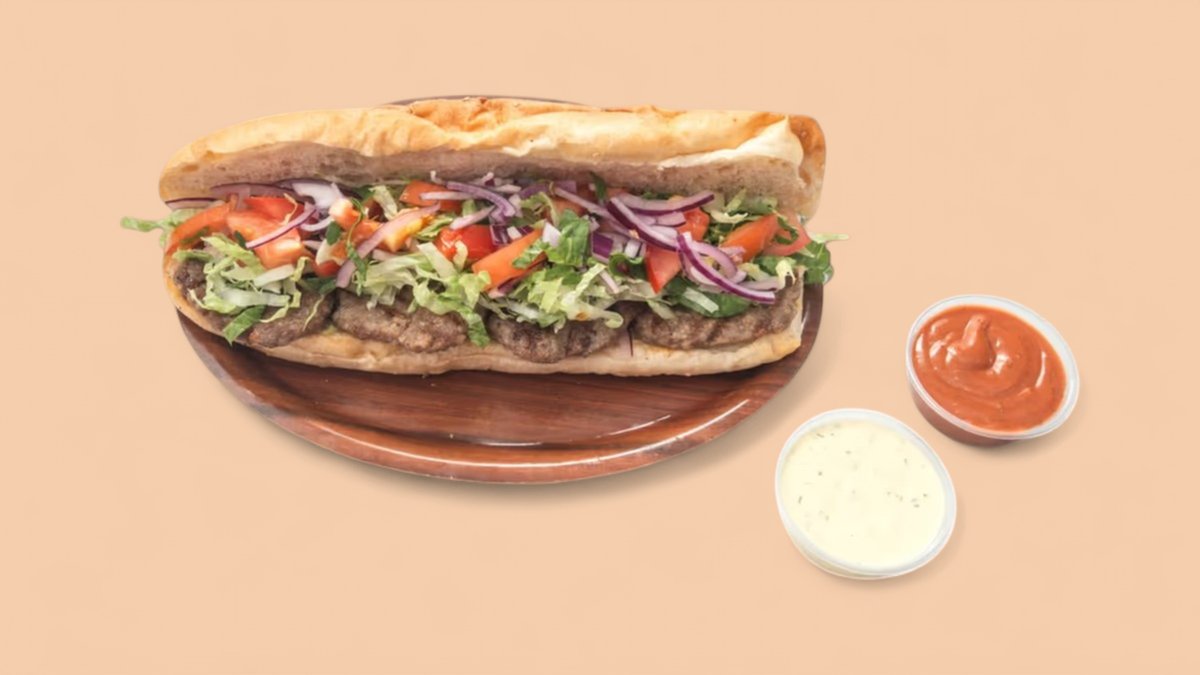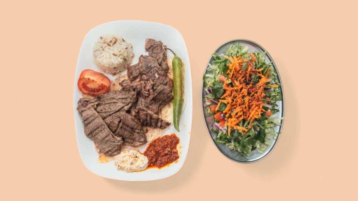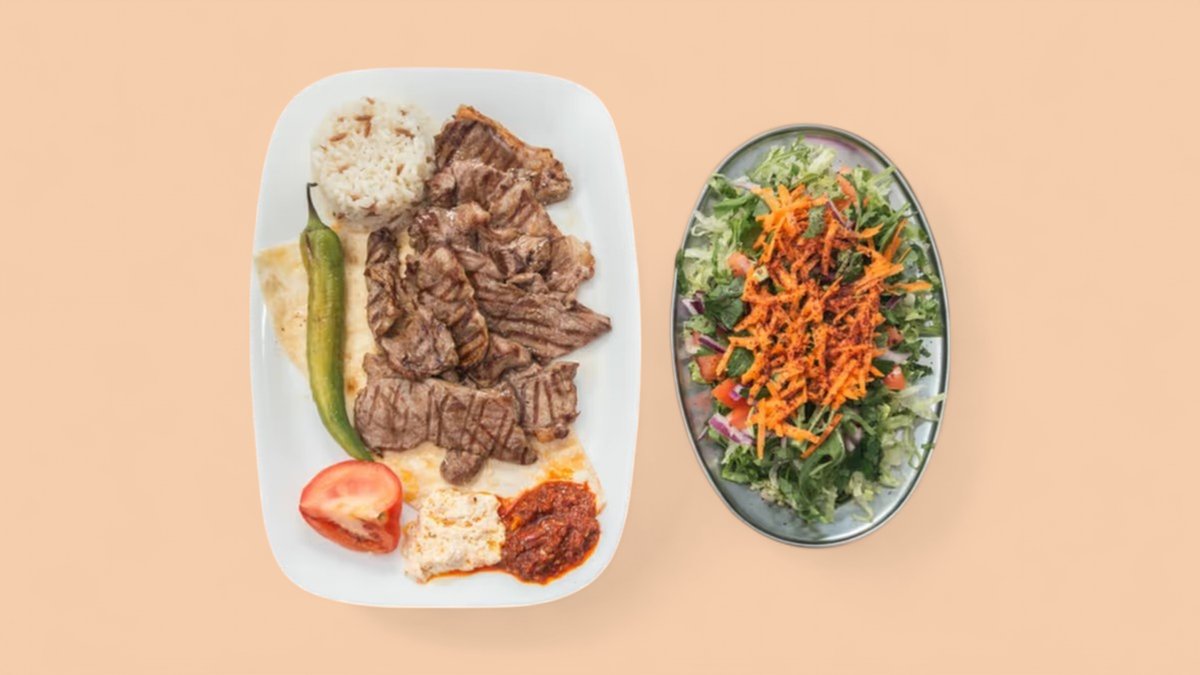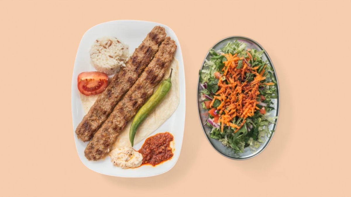 mit einem Adana-Hackfleischspieß und 2 Soßen deiner Wahl