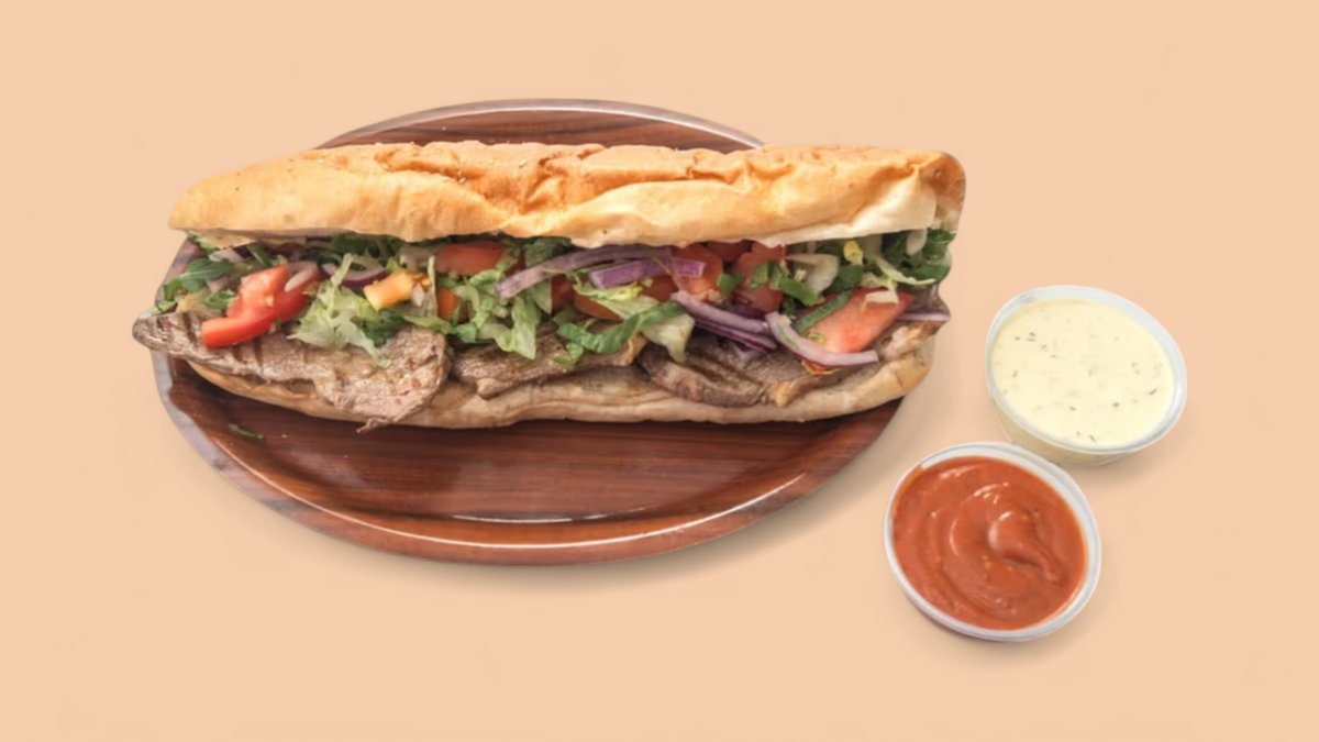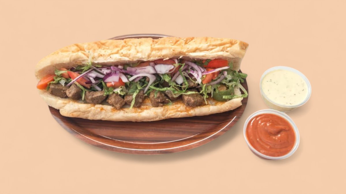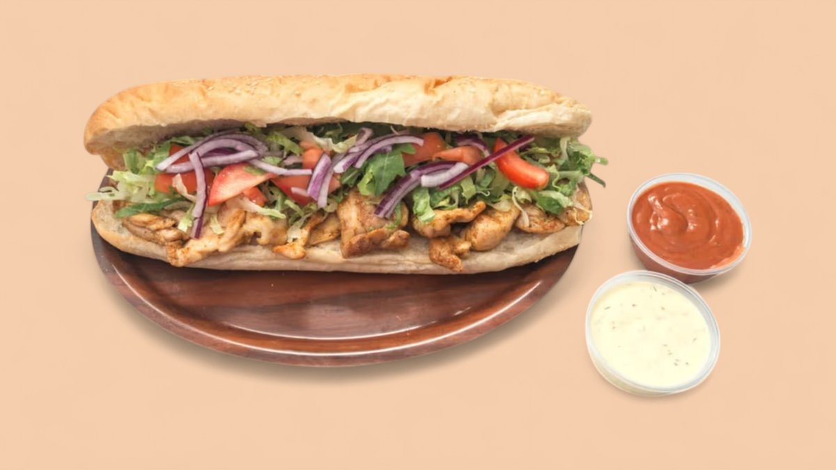 alle Baguettes werden mit Römersalat, Tomaten, Zwiebeln und zwei Soßen deiner Wahl zubereitet