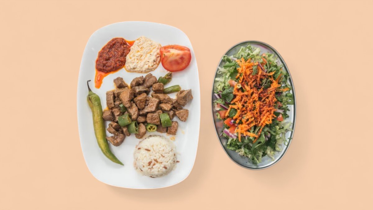 mit 2 Adana-Hackfleischspießen, Reis und Salat