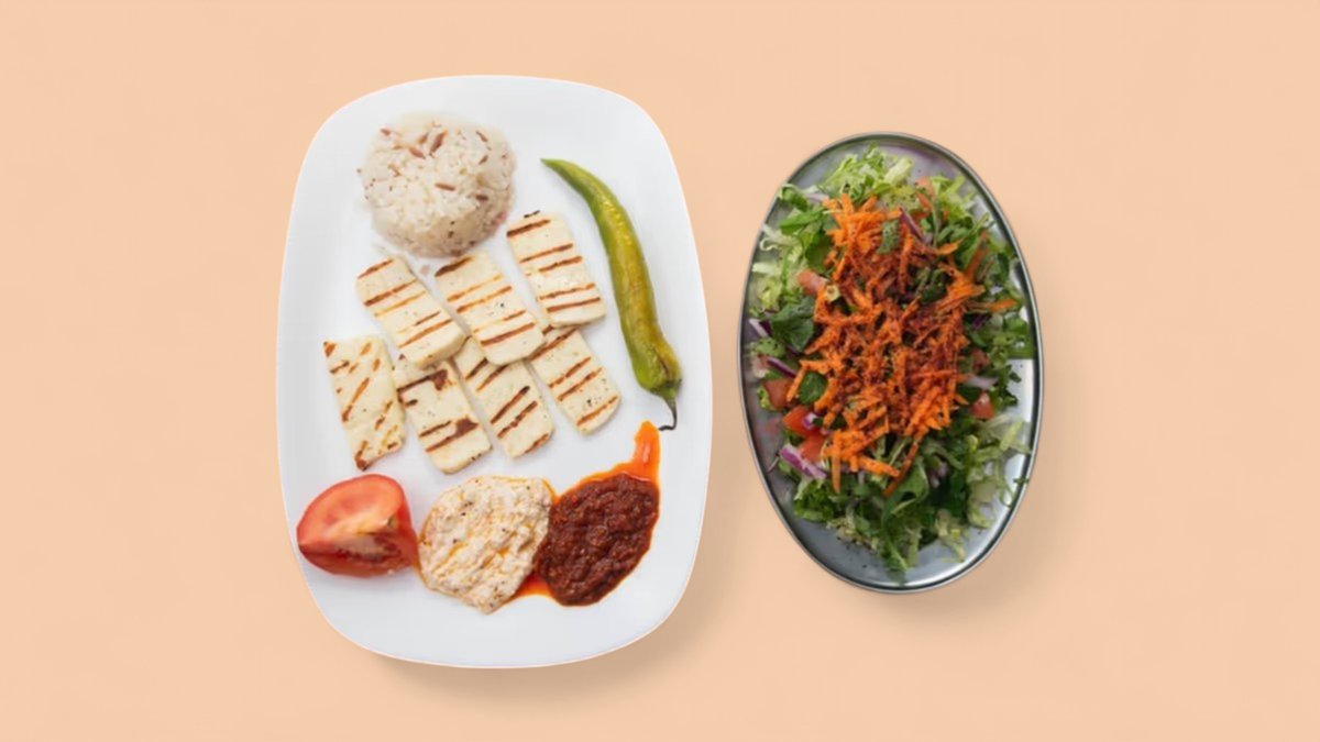 mit 4 Halloumi-Stücken und 2 Soßen deiner Wahl