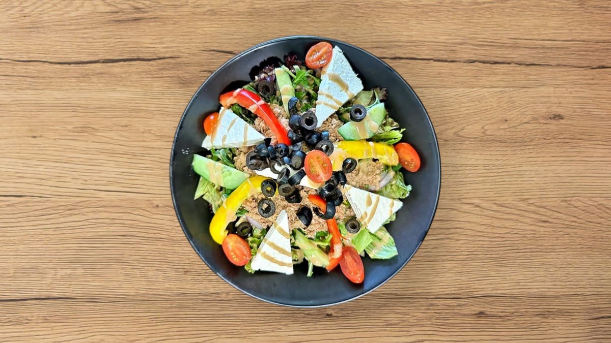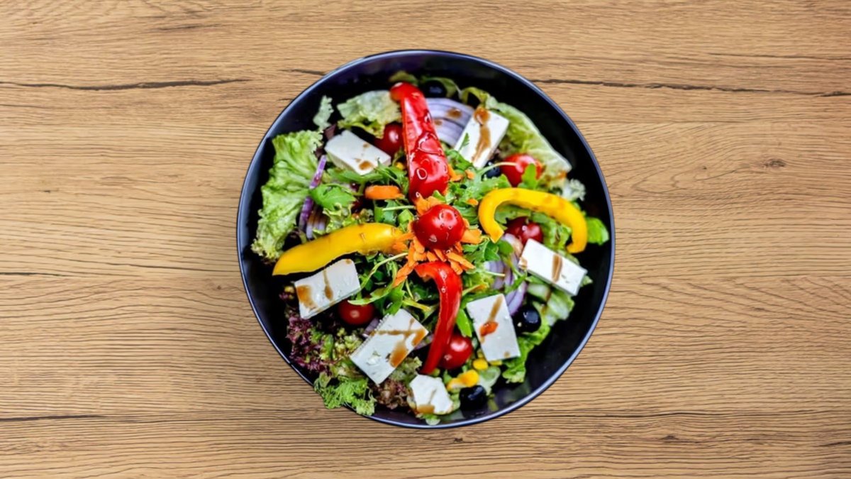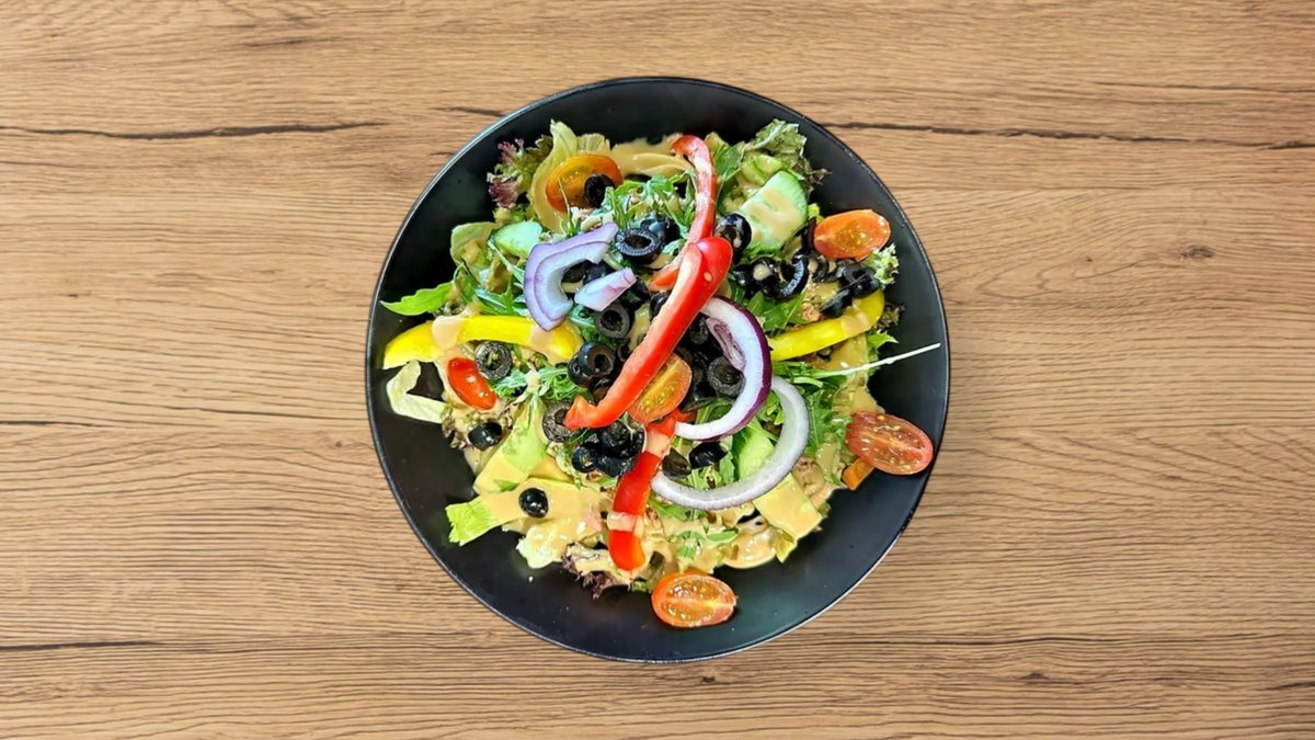mixed salad with vegan mango-ginger dressing and an ingredient of your choice