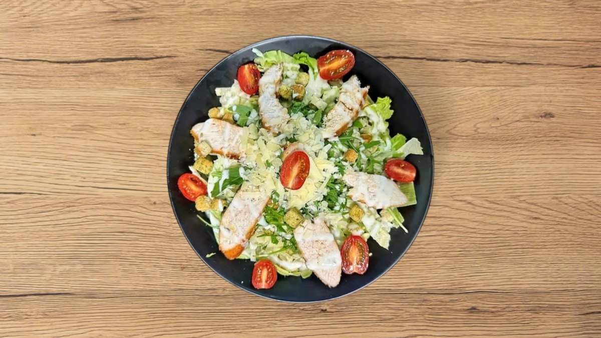 crisp romaine lettuce with chicken fillet, parmesan, yogurt dressing, croutons and an ingredient of your choice
