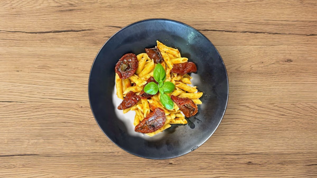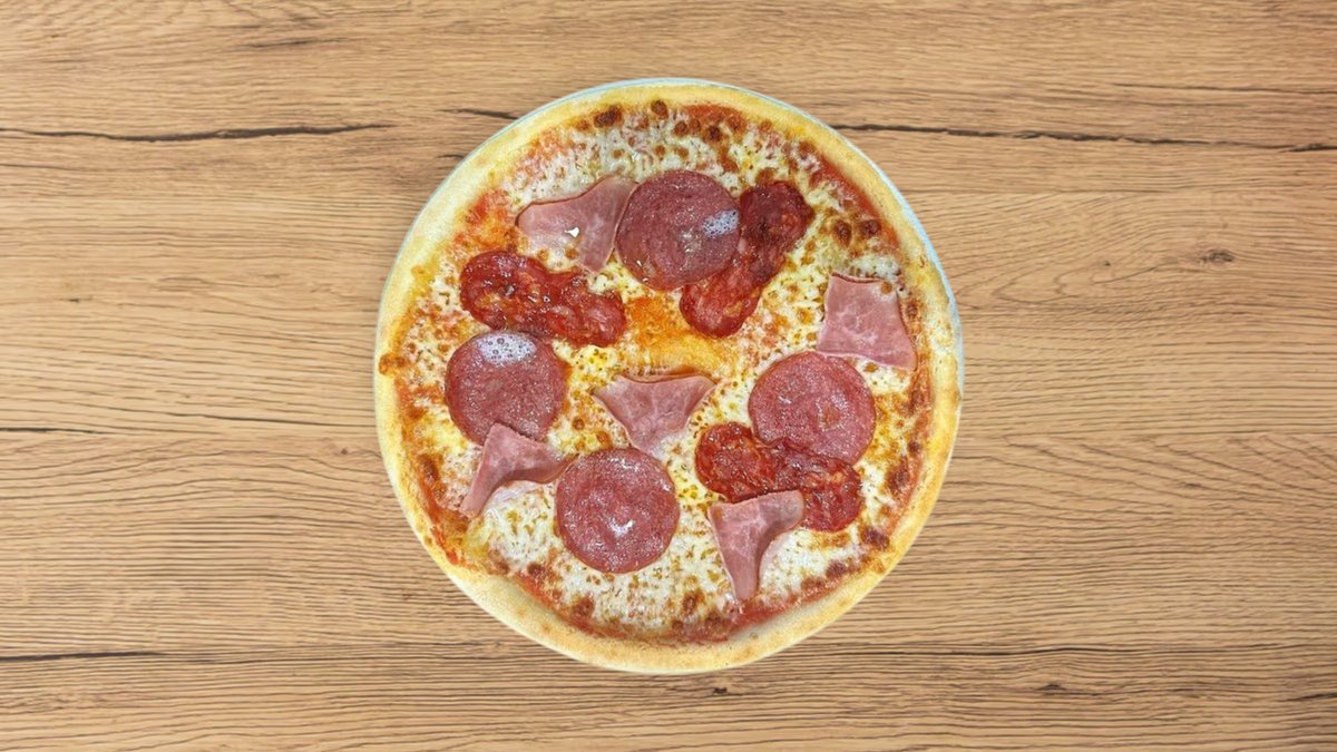 with spicy salami, dried tomatoes, rocket and soft cheese
