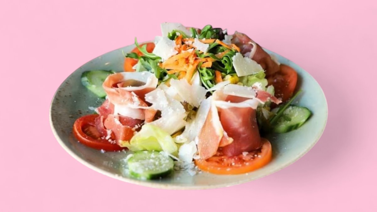 mixed salad with Parma ham, Parmesan cheese, artichokes