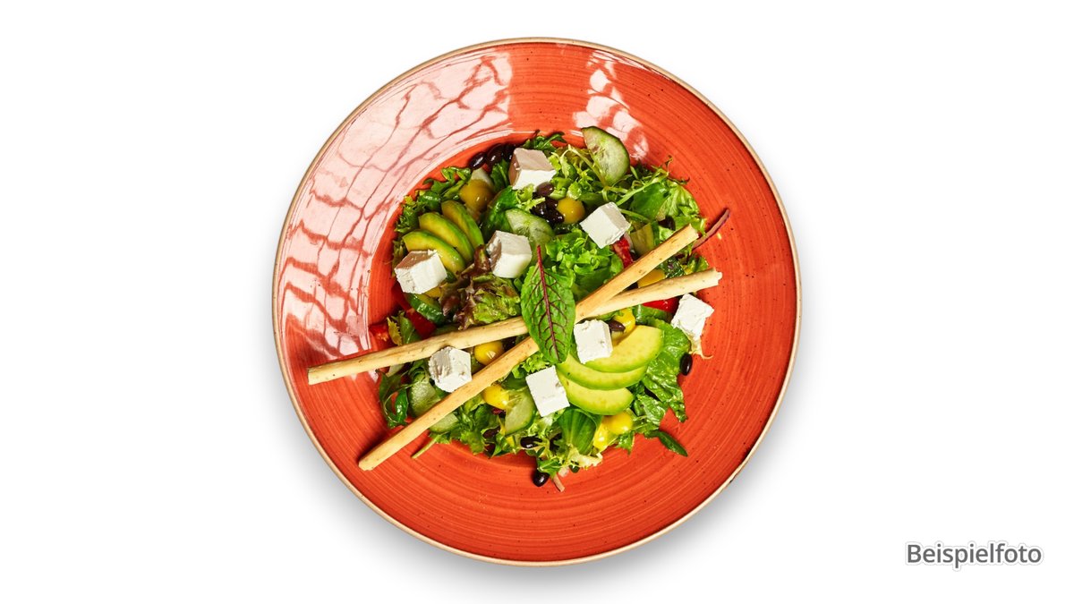 all dishes are prepared with avocado, Cheddar cheese, scrambled eggs and salad