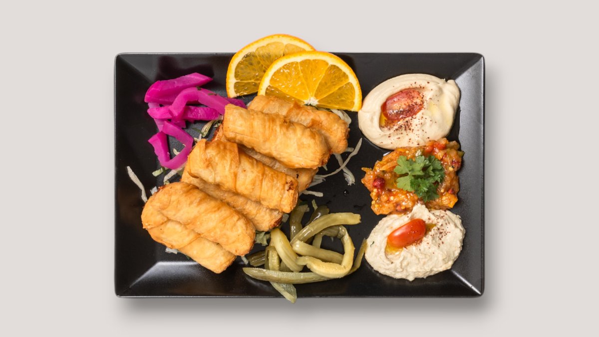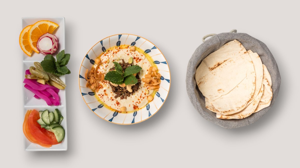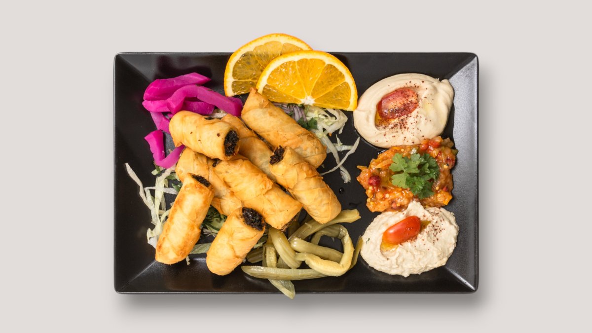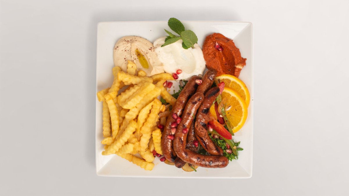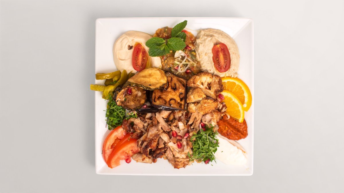 alle Gerichte werden mit Hummus, Knoblauchsoße, Beilage Salat, gegrillter Paprika, Zwiebeln, Tomaten und einer Beilage deiner Wahl zubereitet