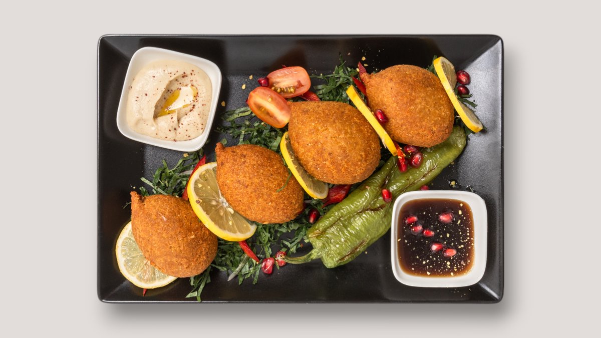 4 Stuck gebratene Bällchen aus Weizengrütze gefüllt mit Lammfleisch, Rindfleisch und Spezialgewürzen