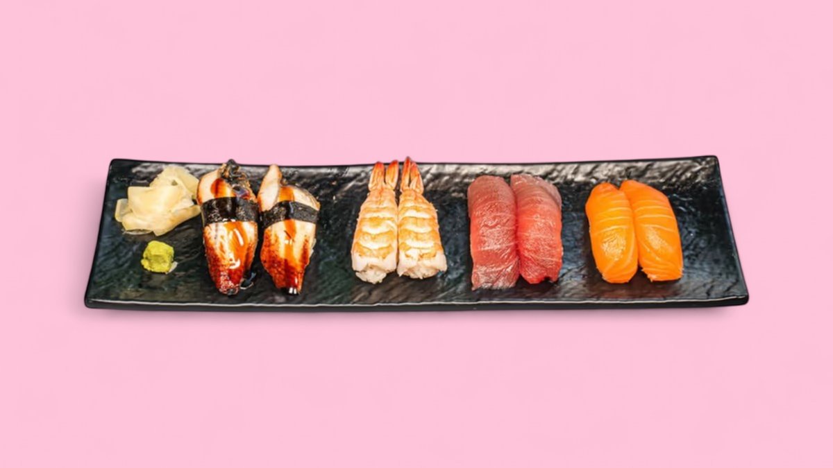 3 x salmon nigiri flambéed 3 x tuna sashimi 3 x salmon sashimi 4 x Ebi Tempura I.O. coated with grilled river eel 4 x Ebi Tempura I.0. coated with salmon
