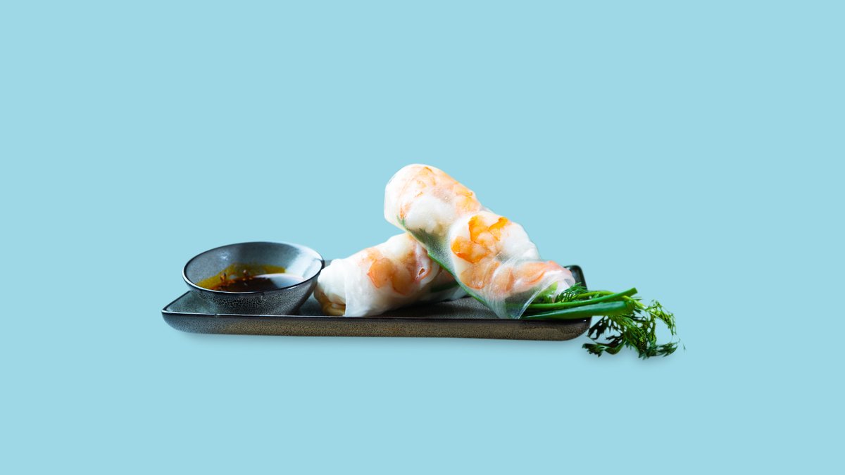 with homemade shrimp, salad, rice noodles and eggs, wrapped in rice paper and fish sauce on request