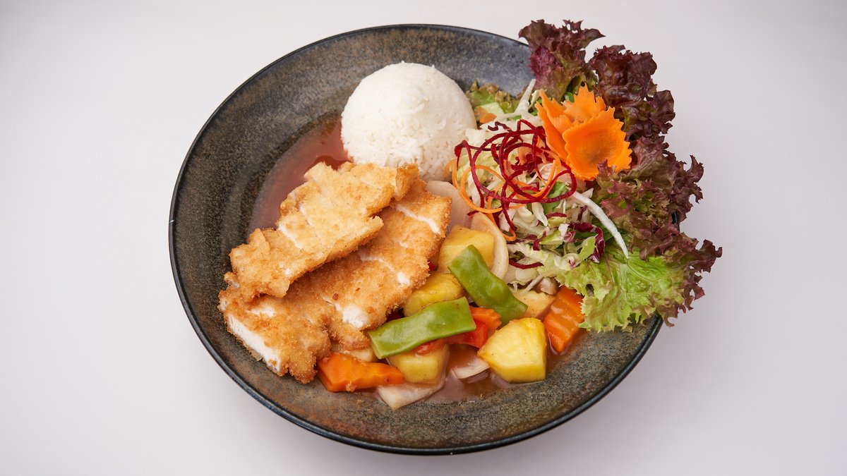 2 Stück paniertes Hühnchenfleisch mit Spezialsoße