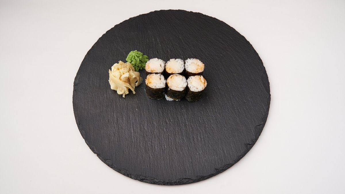 8 Stück kleine gebackene Makis mit Garnelen und Avocado