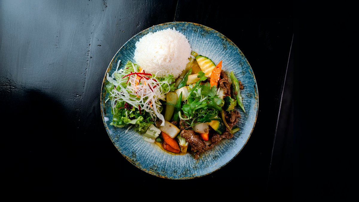 gebratenes Gemüse im Wok mit Zitronengras, Sesam, Koriander und einer Zutat deiner Wahl