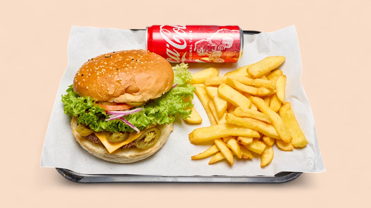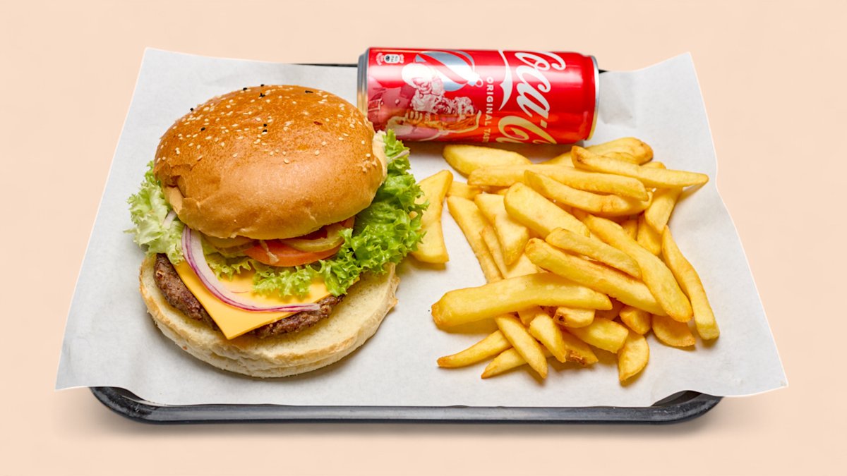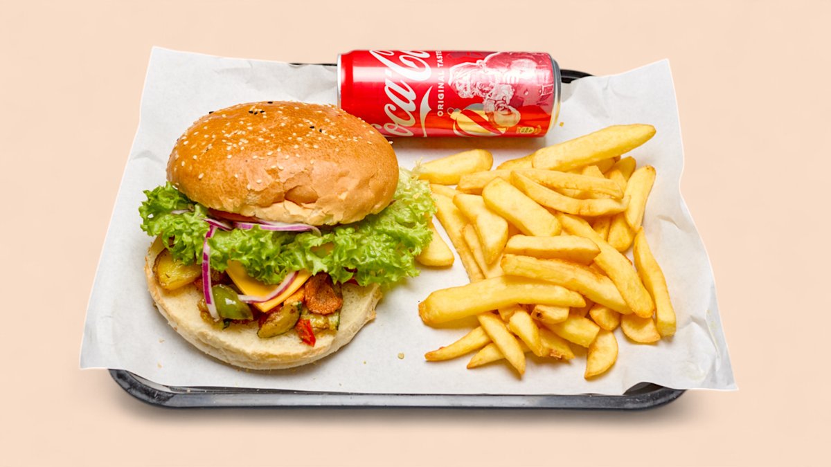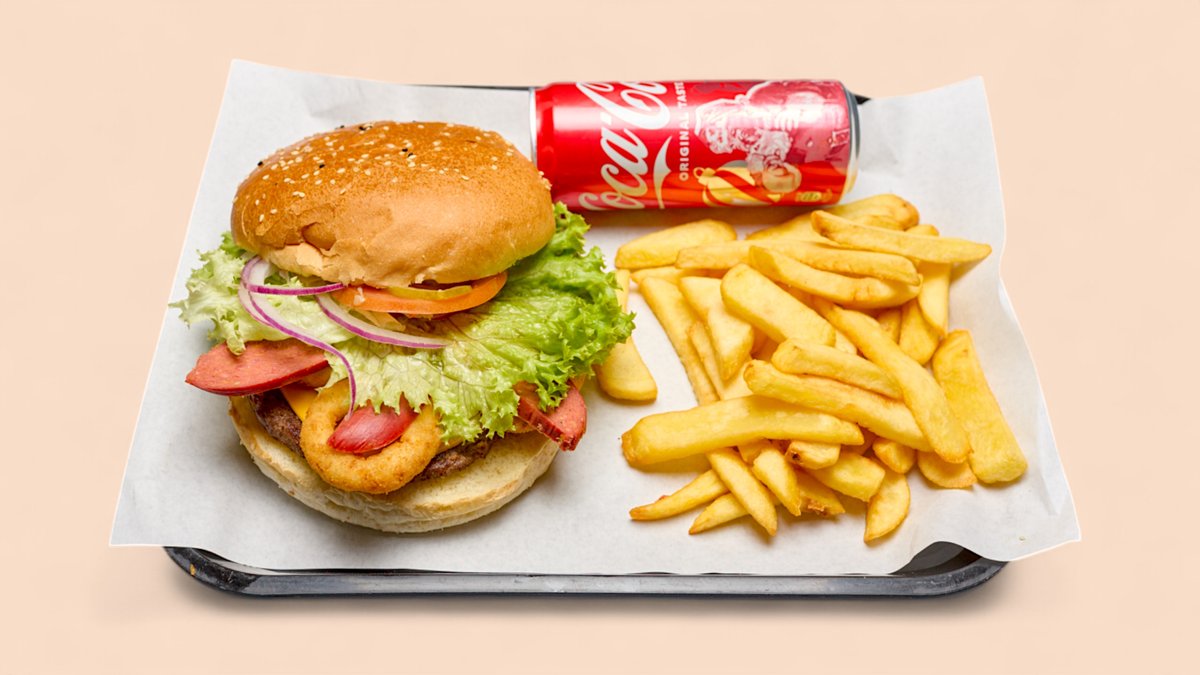 all menus are served with French fries, a sauce and a 0.33l non-alcoholic drink of your choice