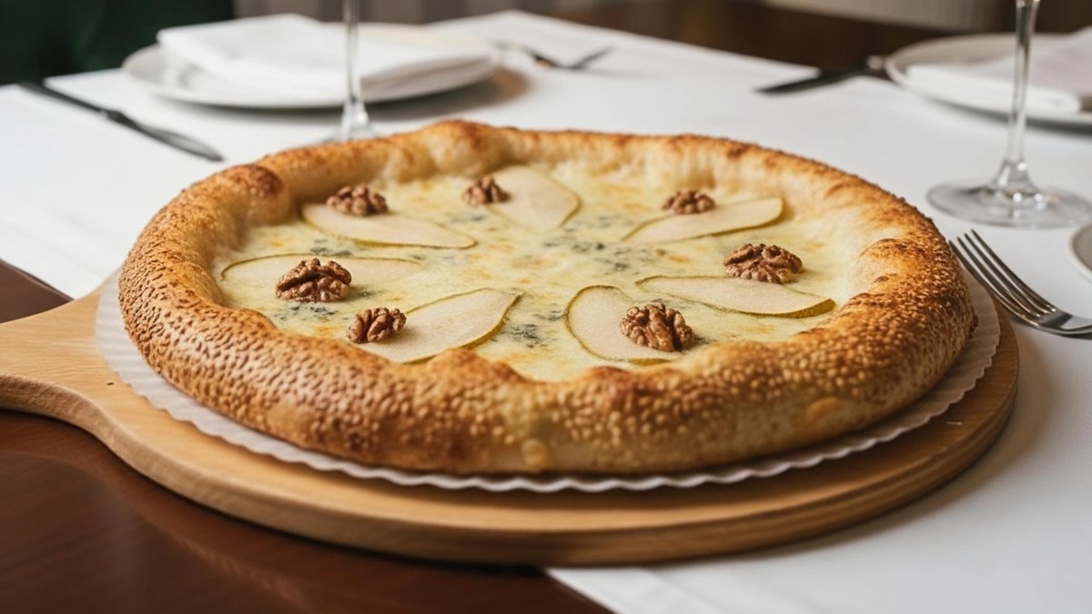 mit Gorgonzola, pochierter Birne, Walnüssen und ohne Tomatensoße