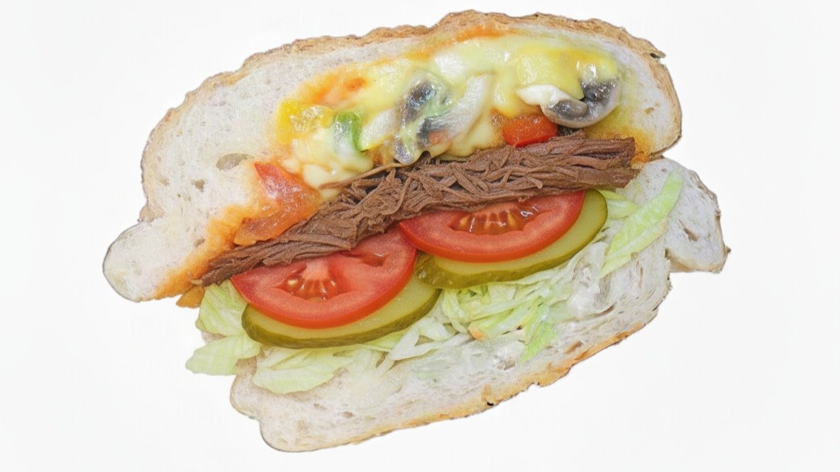 Persiches Baguette,Essiggurken,Tomaten,Salat,Pilze,Käse,Mais,Paprika,((200gr) Rindfleisch
