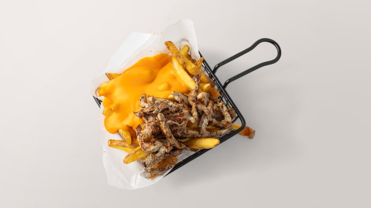 ca. 21 cm lang Brioche Baguette-Bun mit Rib-Eye-Steak, Sesam, gebratenen Zwiebeln, Aioli, Käsesoße und Zutaten deiner Wahl
