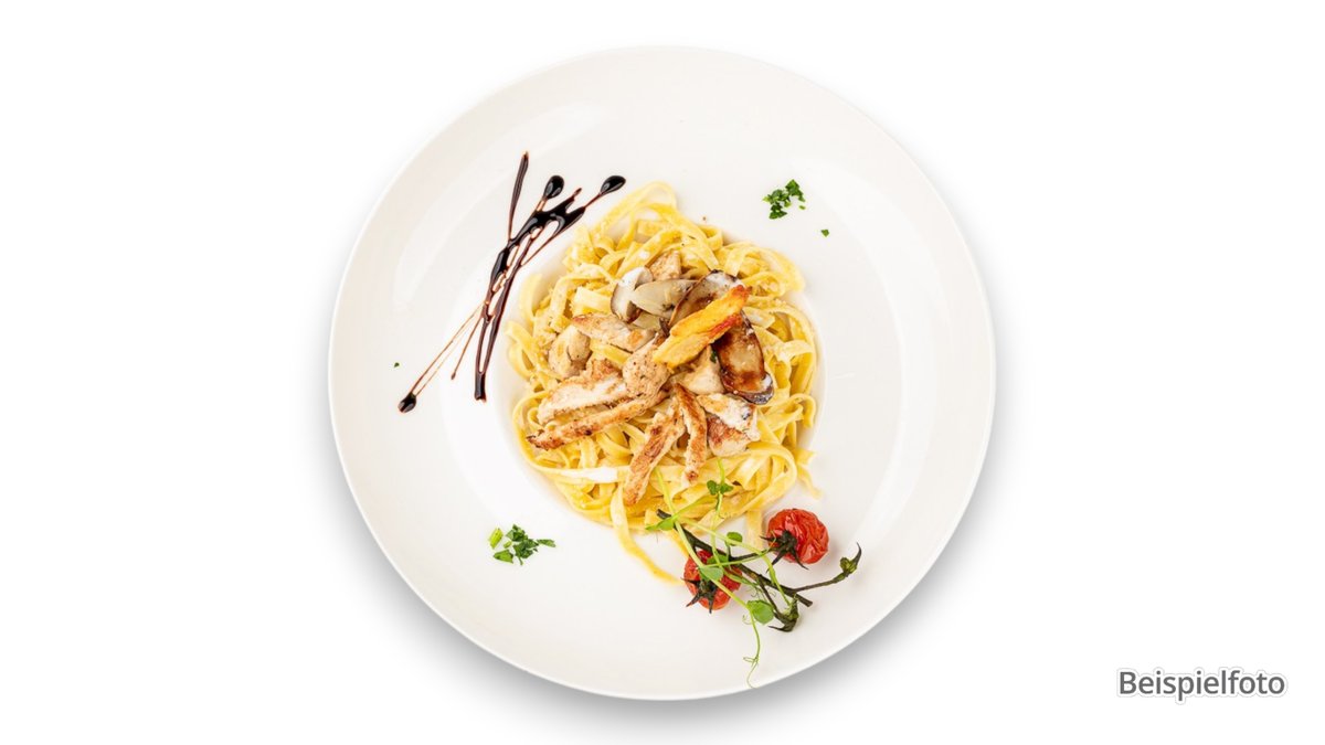 Rigatoni und grüne Bandnudeln mit Hähnchenbrustfiletstreifen in Sahnesoße