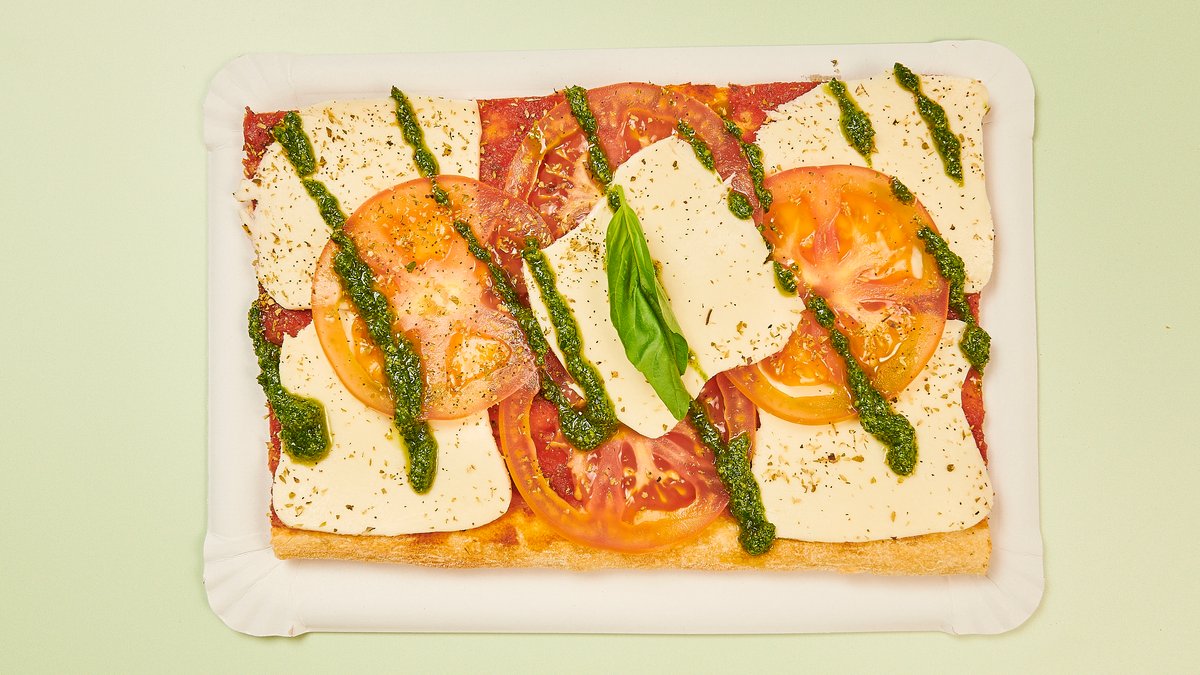 all pizza slices are served in portions of one piece and prepared with homemade pizza dough, mozzarella and homemade tomato sauce