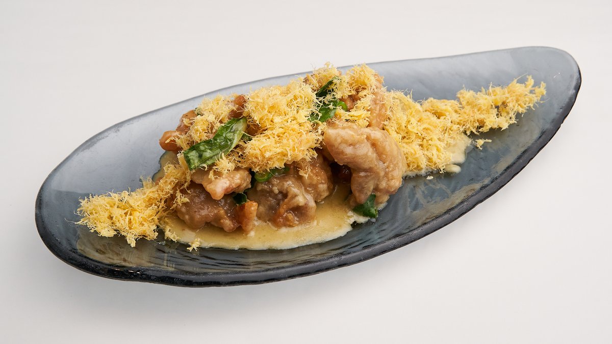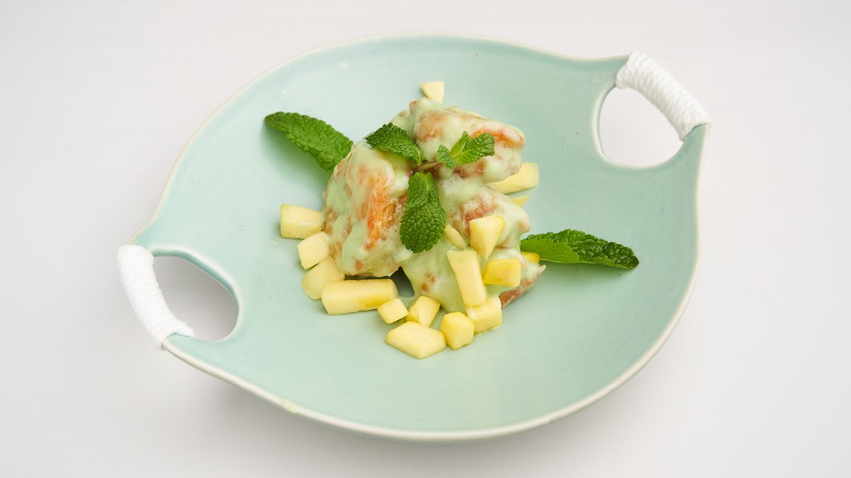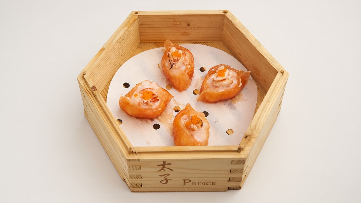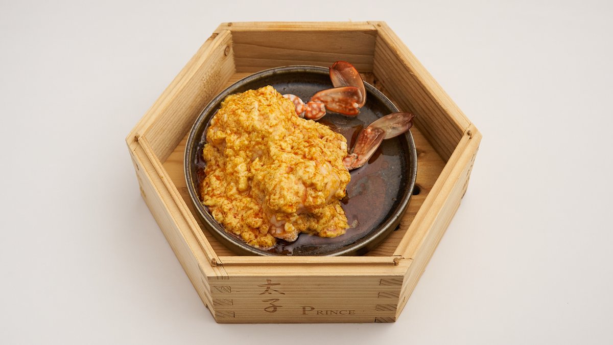 2 Stück Krebs mit Garnelen, Schweinefleisch, Eigelb und gelbem Curry