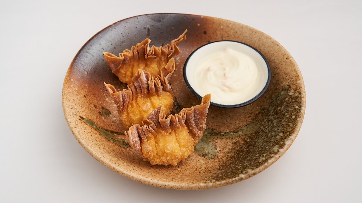 3 Stück gebackene Garnelen-Dumpling mit Mayonnaise-Dressing