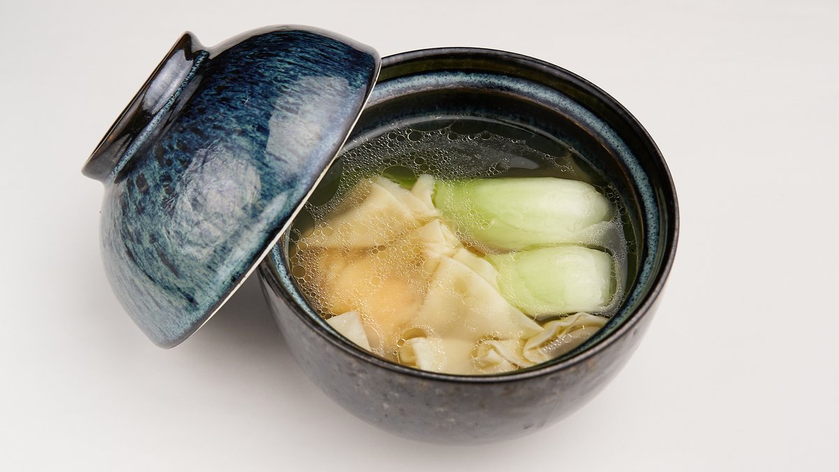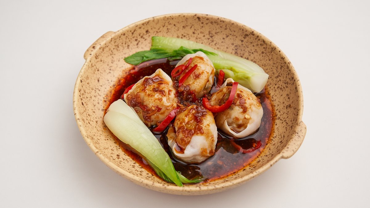 Wan-Tan-Teigtaschen mit Garnelenfüllung, Pak Choi und Chinakohl