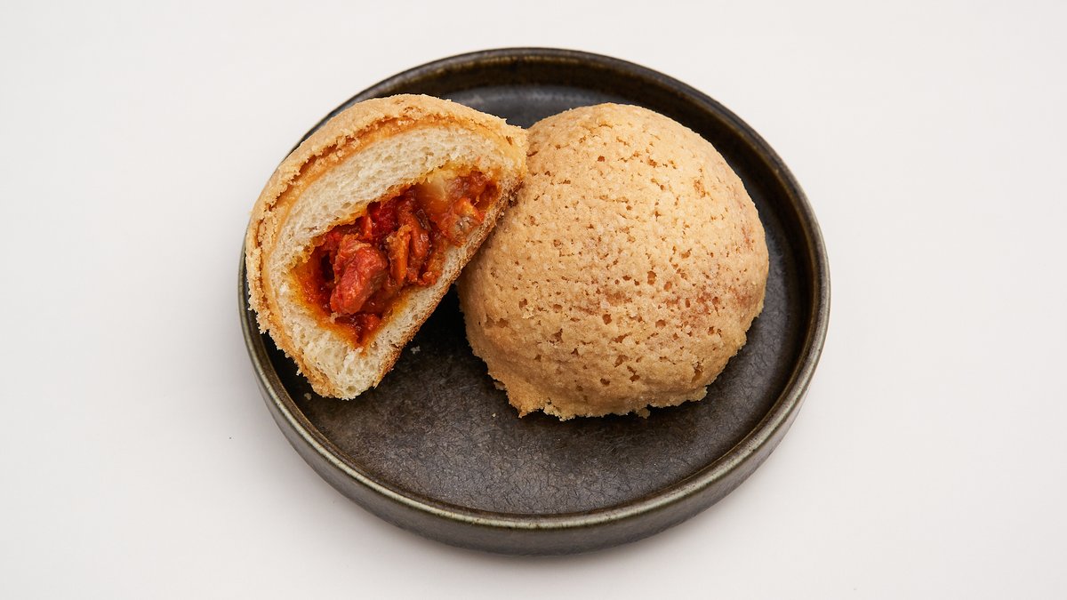 2 Stück Zarte weiße Bao mit lavaheißer gesalzener Eigelbfüllung
