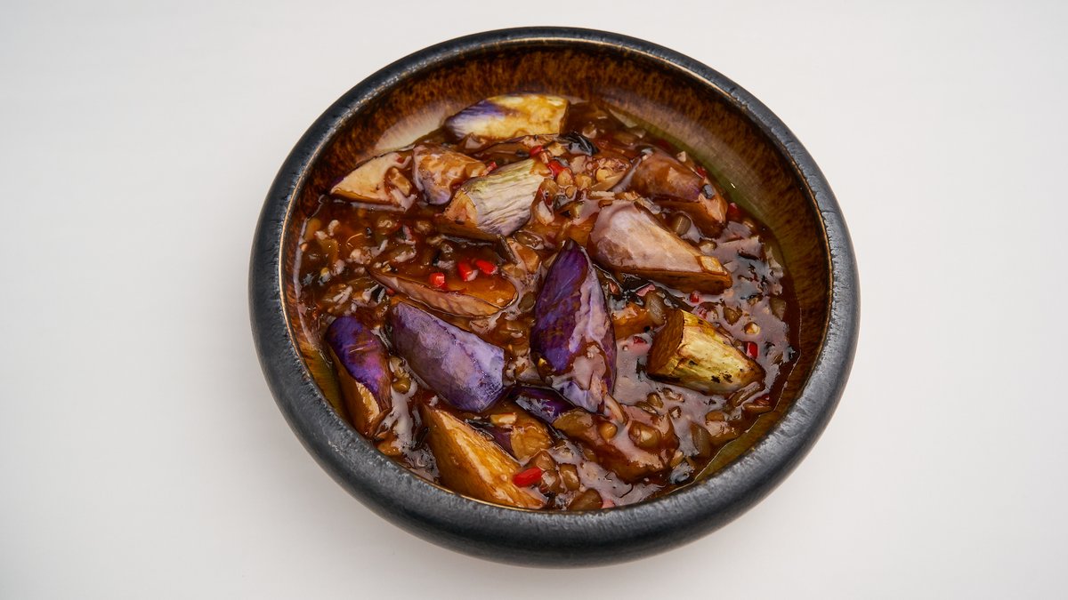 scharf Wok gebratene chinesische Auberginen im Szechuan Stil