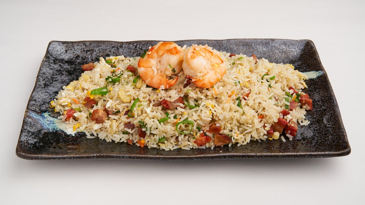 Gebratener Reis mit Ei, Garnellen & Char Siu in Yangzhou Stil