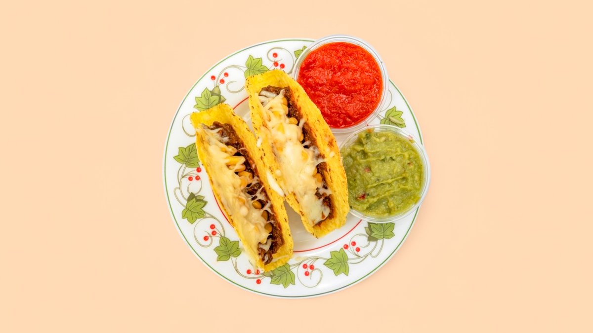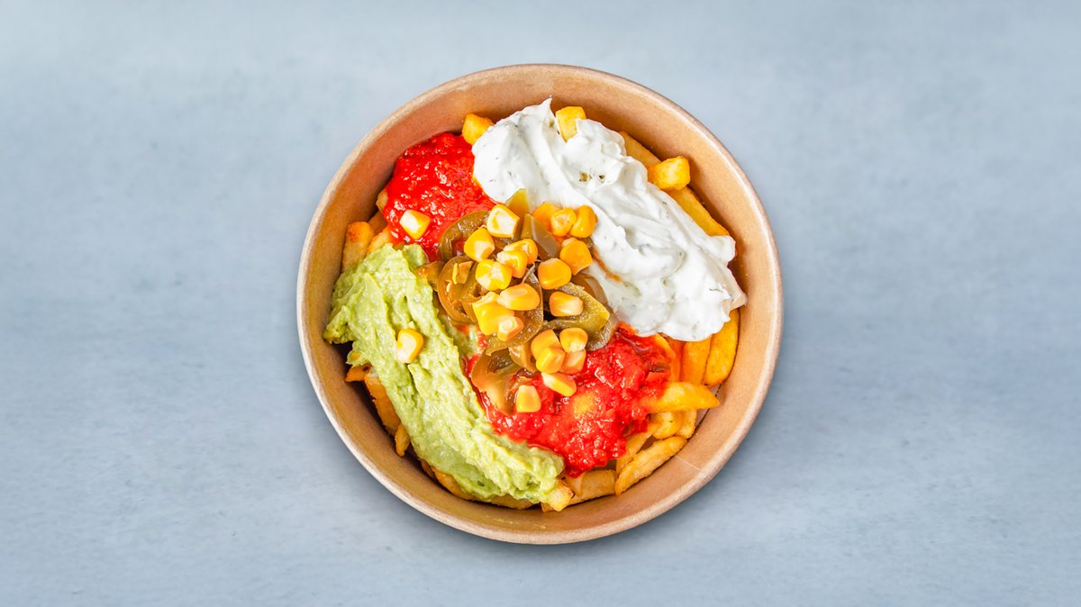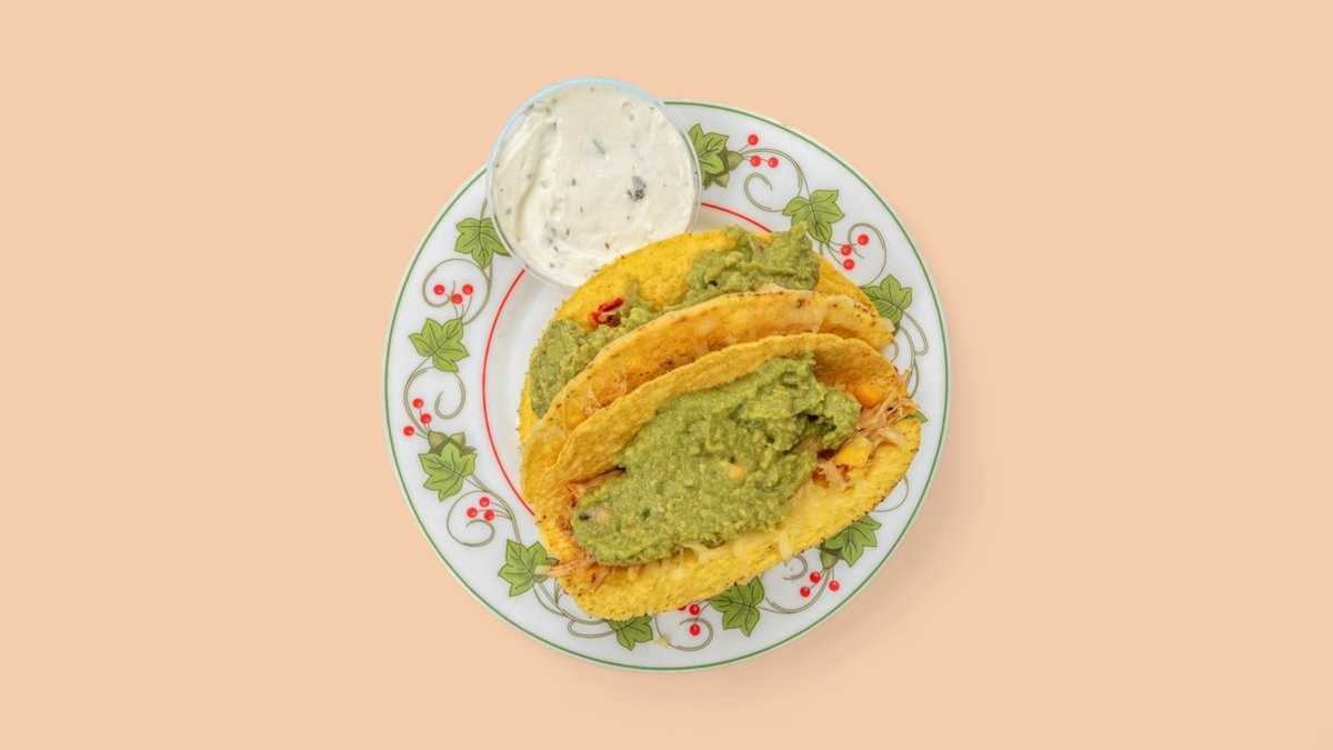 3 piece with avocado, guacamole, corn, cheese and salsa