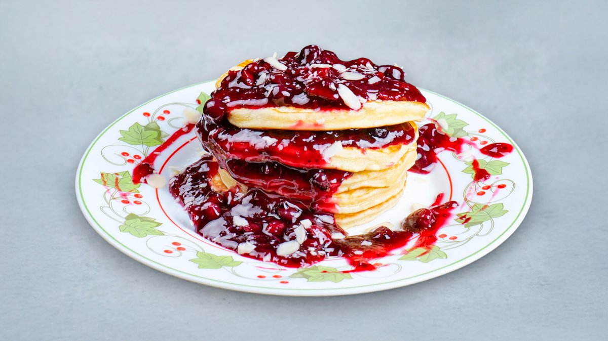 try our delicious pancakes with wild berry compote, the perfect combination of fluffy pancakes and fruity wild berry compote