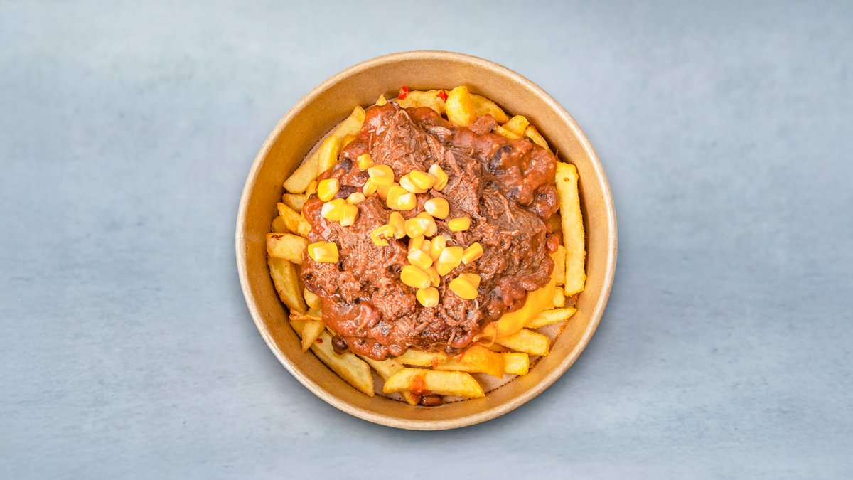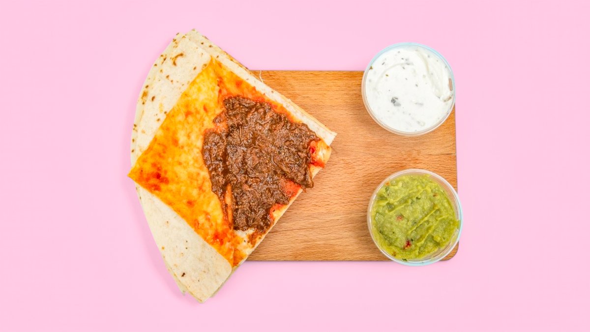 3 pieces with salsa, corn, pulled beef, cheese and BBQ sauce