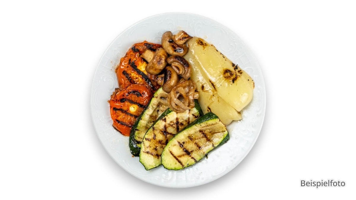 colorful selection of grilled vegetables (cauliflower, zucchini, onions, bell peppers, carrots, eggplants, champignons, beans, broccoli) with an ingredient of your choice