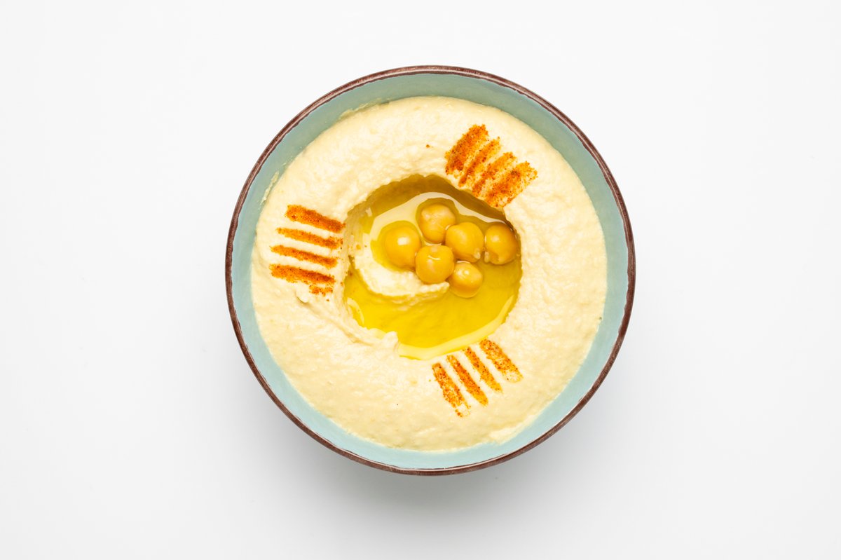 gekochte Kichererbsen mit knusprigem Fladenbrot und Tahini