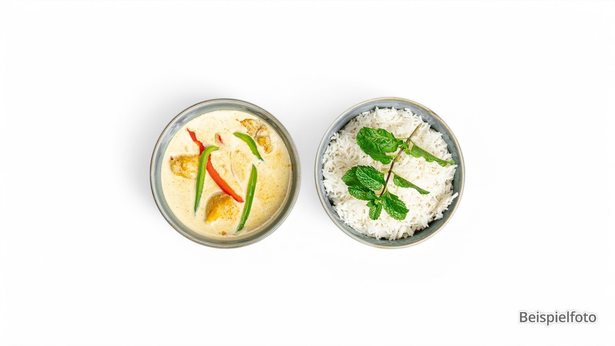 with coconut milk, bamboo, champignons, bell peppers, carrots, broccoli, green beans, fresh fried vegetables and an ingredient of your choice
