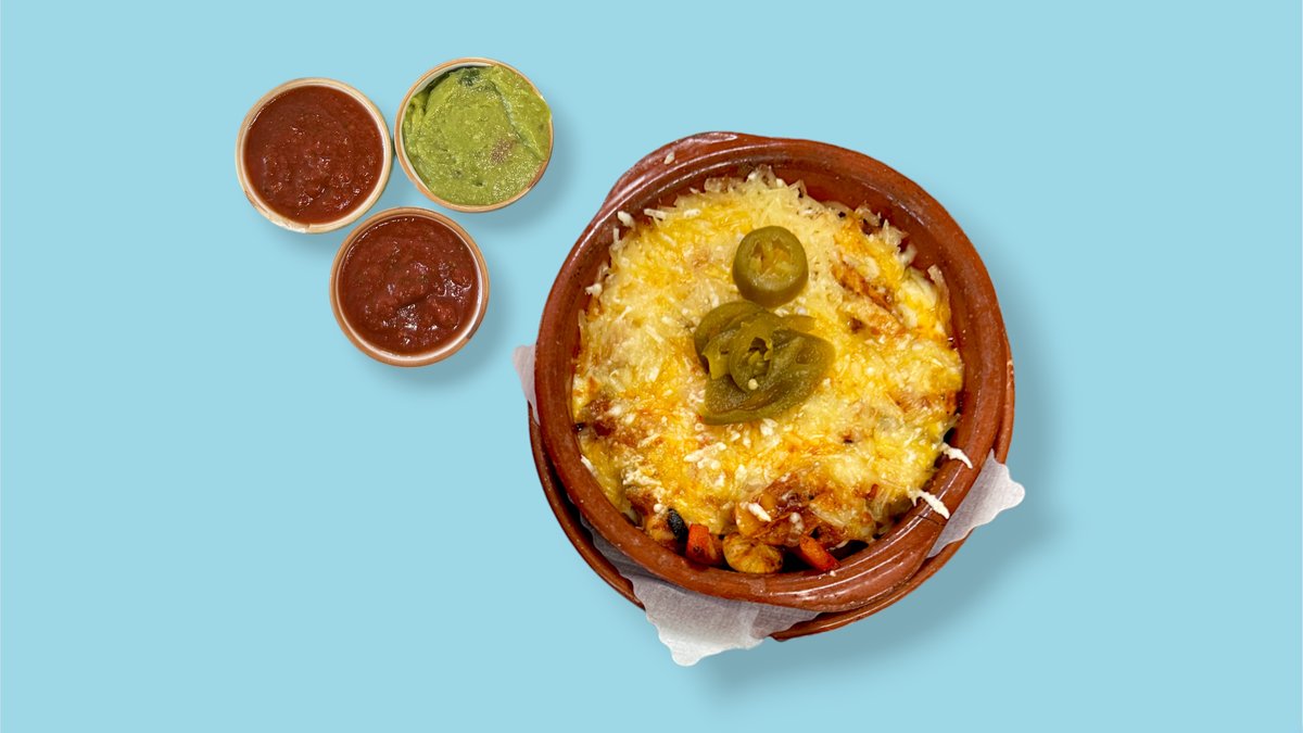 alle Gerichte werden mit Avocadocreme, Salsa und mit veganem Käse zubereitet (,, Vegan Nachos" wird ohne Avocadocreme zubereitet und ,,Fajitas de Vegan" wird ohne veganer Käse zubereitet)