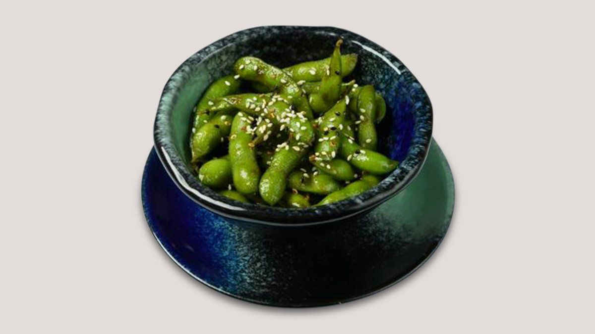 gedünstete japanische Sojabohnen mit Schote und gebraten mit dunkler Soße