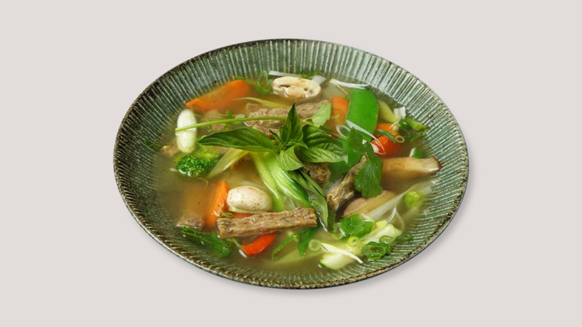 delikate Suppe mit natürlichen vietnamesischen Aromen, Kokosmilch, Zwiebeln, Koriander und einer Zutat deiner Wahl