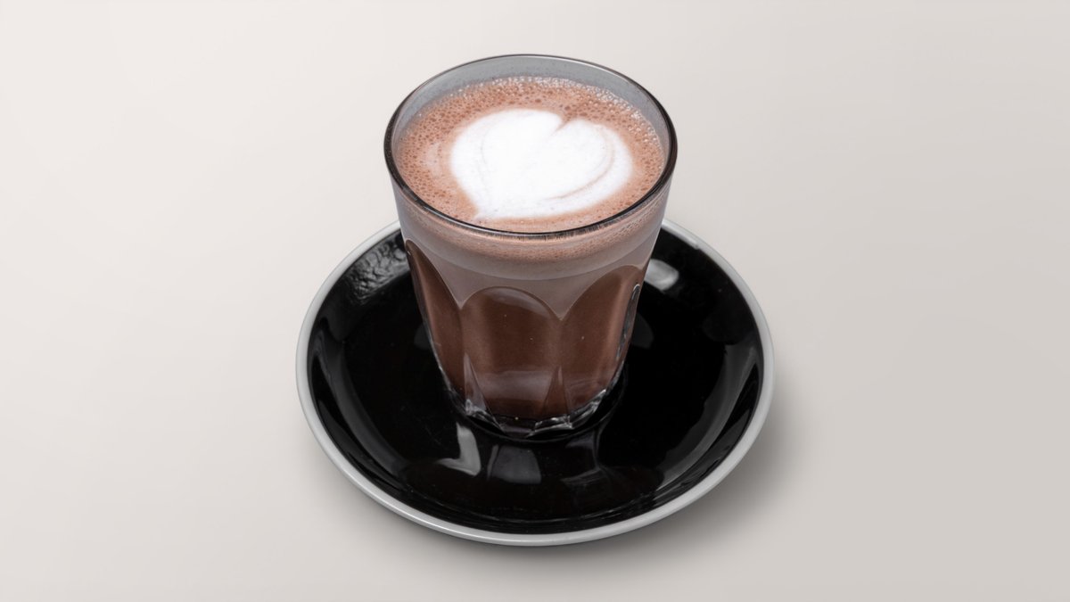 hot chocolate with a type of milk of your choice Note that there are cocoa nibs in the dish which may include traces of various nuts