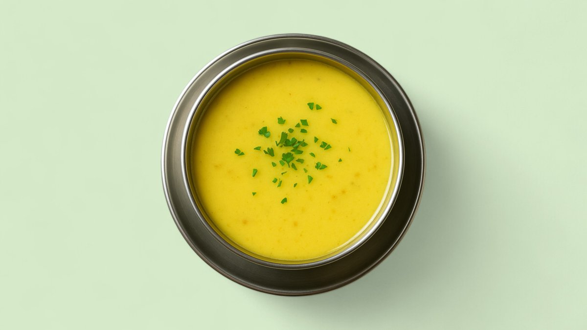 gewürzte Dickmilch mit Kumin und Kichererbsenbällchen