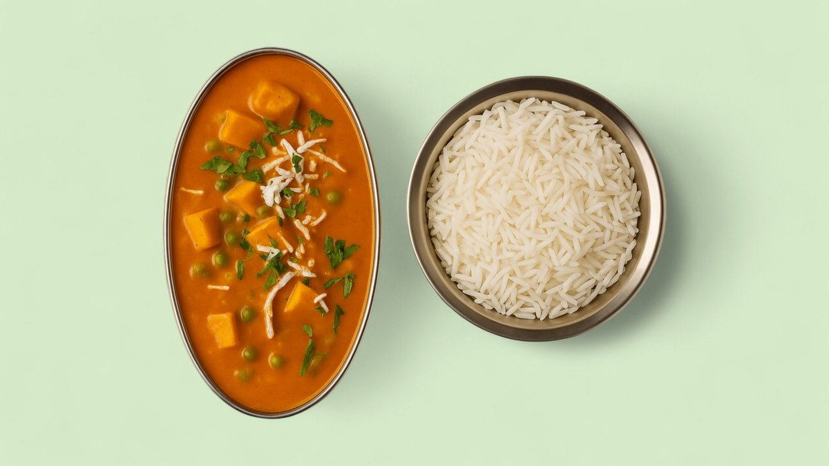 Erbsen mit hausgemachtem indischem Rahmkäse