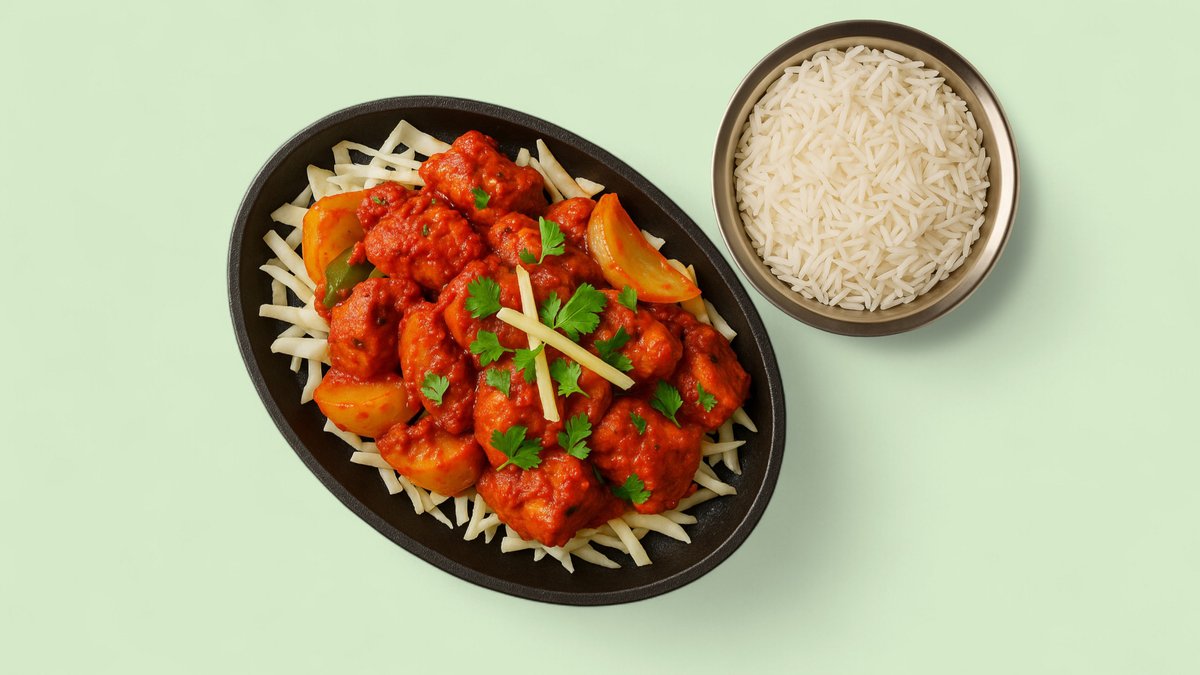 Hähnchenfilet in roter Currysauce nach nordindischer Art zubereitet